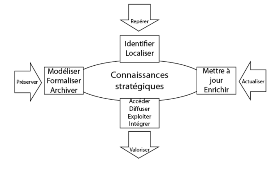 - La connaissance explicite : peut-être consultable (car formalisée sur des documents) ou tacite (uniquement dans la tête des employés) ;